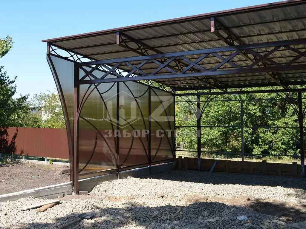 Стандартные характеристики каркаса навеса: столбы 80х80х3мм.