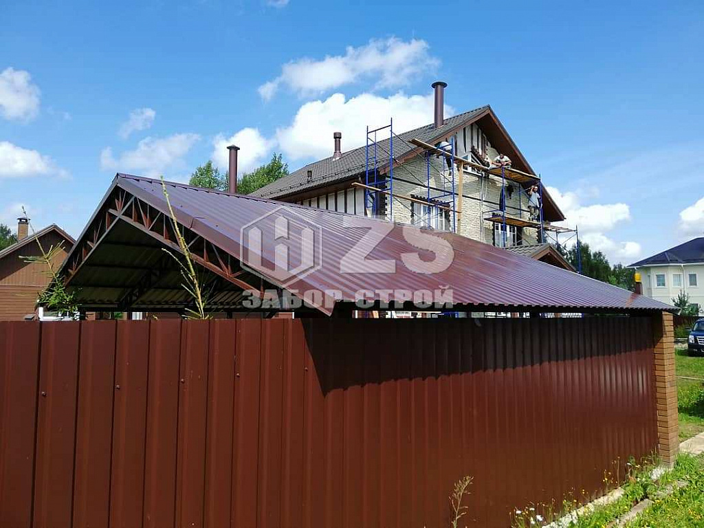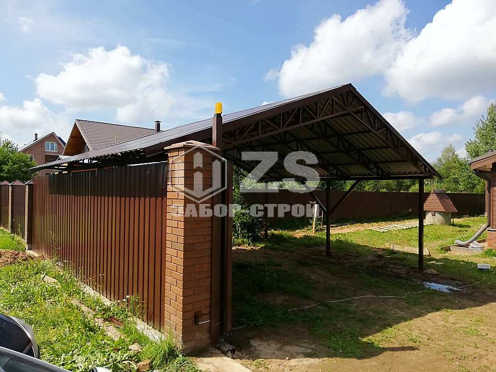 Стандартные характеристики каркаса навеса: столбы 80х80х3мм.