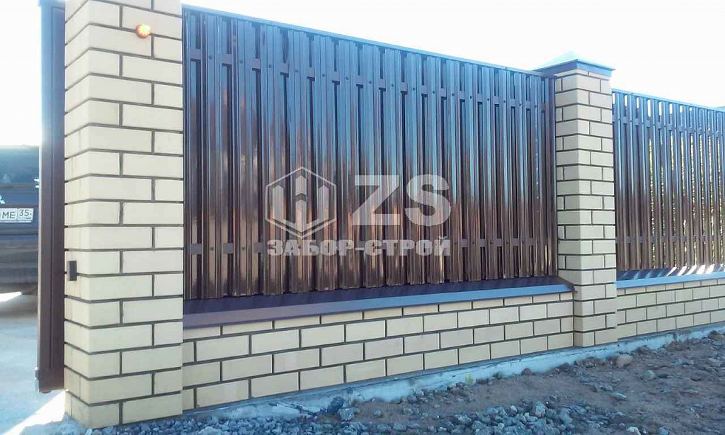 - Забор на ленточном фундаменте из евроштакетника 35 метров