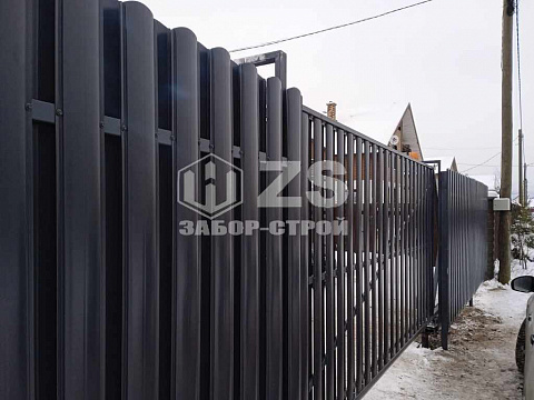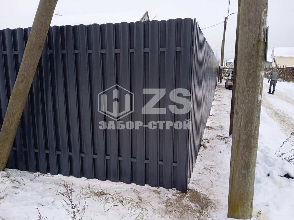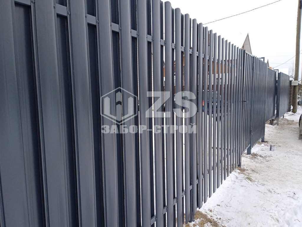- Забор на столбах с утрамбовкой щебня из евроштакетникаа 12 соток