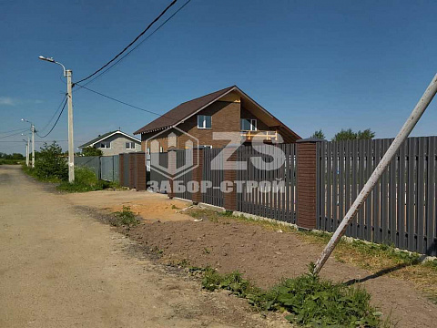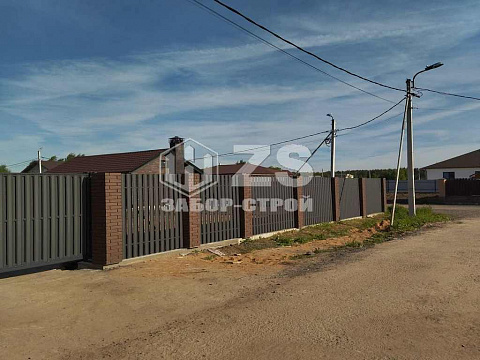 - Забор с кирпичными столбами из евроштакетника 45 метров